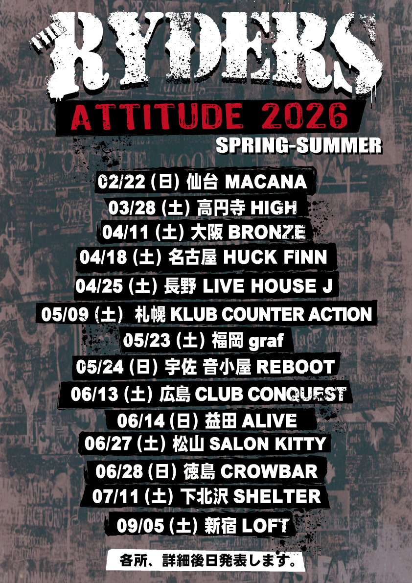 2024年、THE RYDERS NEW single CD待望のリリース! ボーナス曲含む全4曲。 【NEVER GROW UP!】 1500円(税込み)