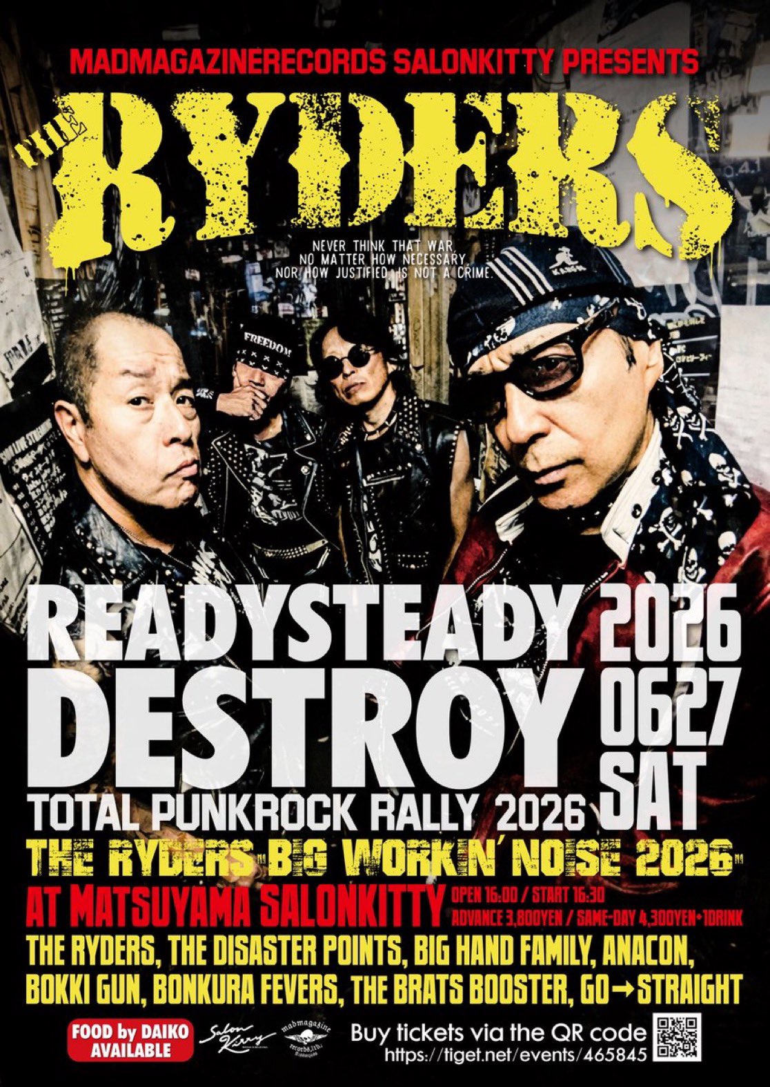 【LIVE】 THE RYDERS THE DISASTER POINTS JUNIOR 【DJ】 チャーマー (BASEMENT CLUB) WARUBILLY (MONKEY CABARET) 【チケット】 プレイガイド発売 1/24(土)10時〜